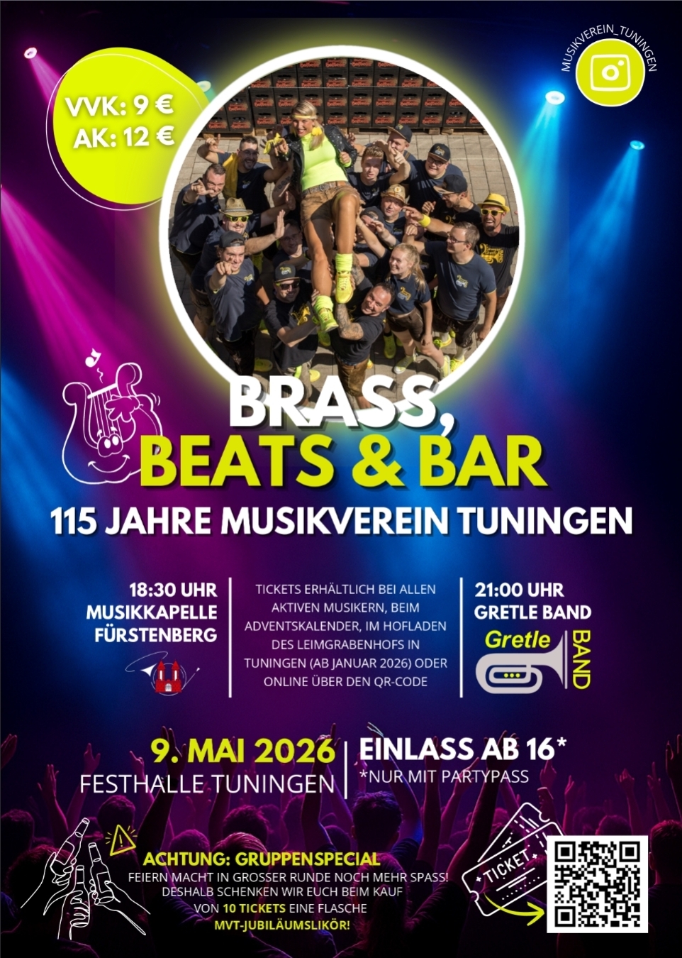 Kauft direkt 10 Tickets zusammen und erhaltet am Brassabend eine Flasche unseres exklusiven MVT-Jubiläumslikörs.